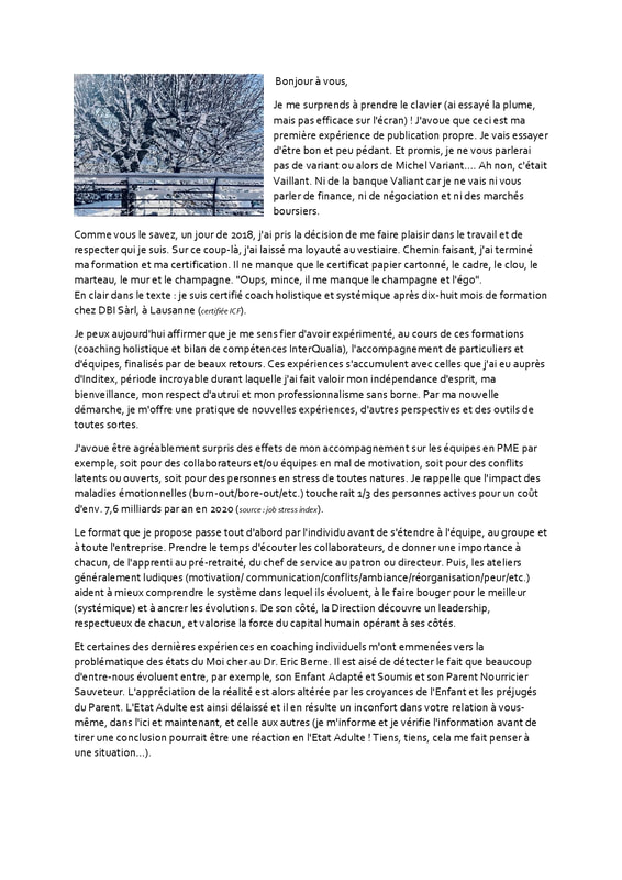 En tous les cas, je me tiens à disposition si remise en question il y avait…et pour ma part, dans une pratique réflexive, dans le respect de chacun, avec humour et sensibilité.