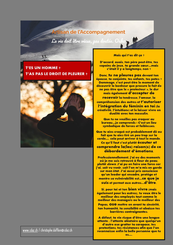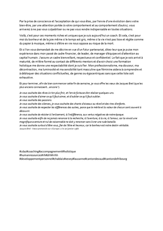 En l’écrivant, je sais que j’ai fait les bons choix, que je suis fier de la personne que je suis, que je ne regrette pas d’avoir choisi d’accompagner et transmettre mon expérience. Et quand cette boule au ventre ou cette situation inconnue me plongeant dans un inconfort apparaissent, et bien j’accepte ce qui se passe, j’accepte mes limites actuelles et je vais chercher en moi ce qui a pu provoquer ce trouble ou ce mal-être. La vie vaut la peine d’être vécue, pas doutée.
